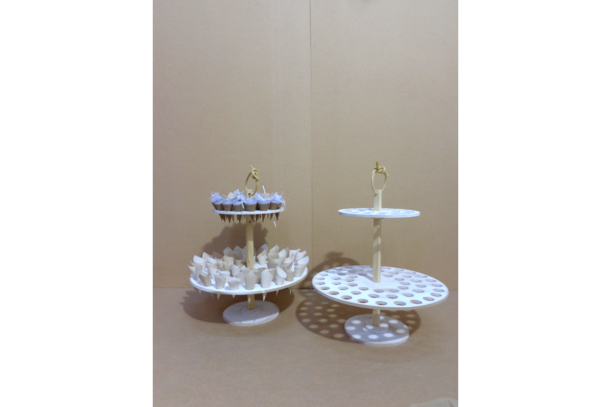 Ξύλινο stand για χωνάκια με δύο επίπεδα σε λευκή απόχρωση. Ιδανικό για να στολίσετε το candy buffet του γάμου ή της βάπτισης με χωνάκια με κουφέτα, marshmallows ή παγωτά. Δώστε χρώμα και γλύκα στη δεξίωση του γάμου, της βάπτισης, αλλά και οποιασδήποτε άλλης εκδήλωσης.