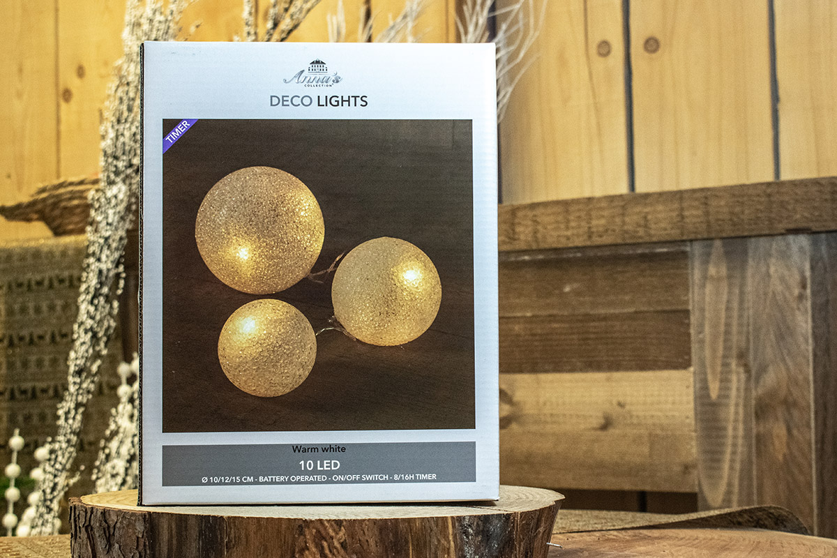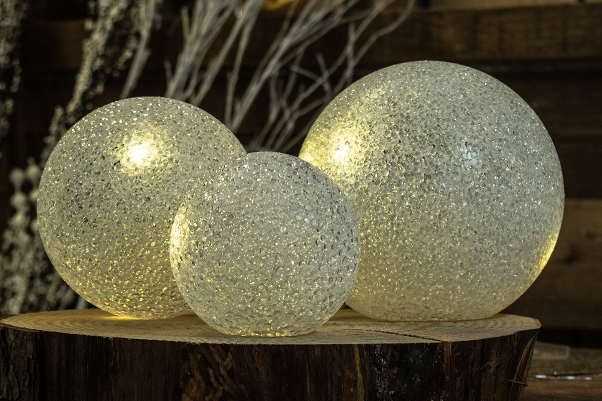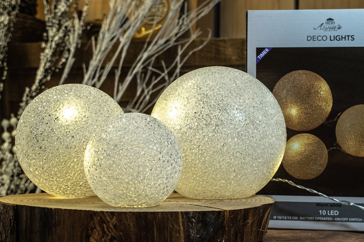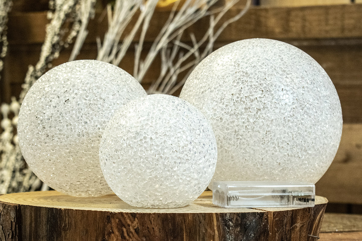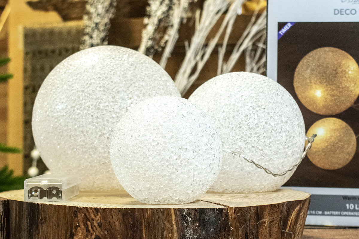 Φωτιζόμενες μπάλες με μπαταρίες, χρονοδιακόπτη και διακόπτη on/off, διαμέτρων 10, 12 και 15cm.