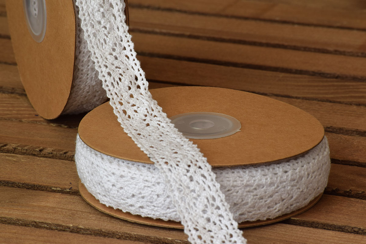 Δαντέλα Βαμβακερή Ρόμβοι 23mm x 10yd Λευκή LC101107-23-1