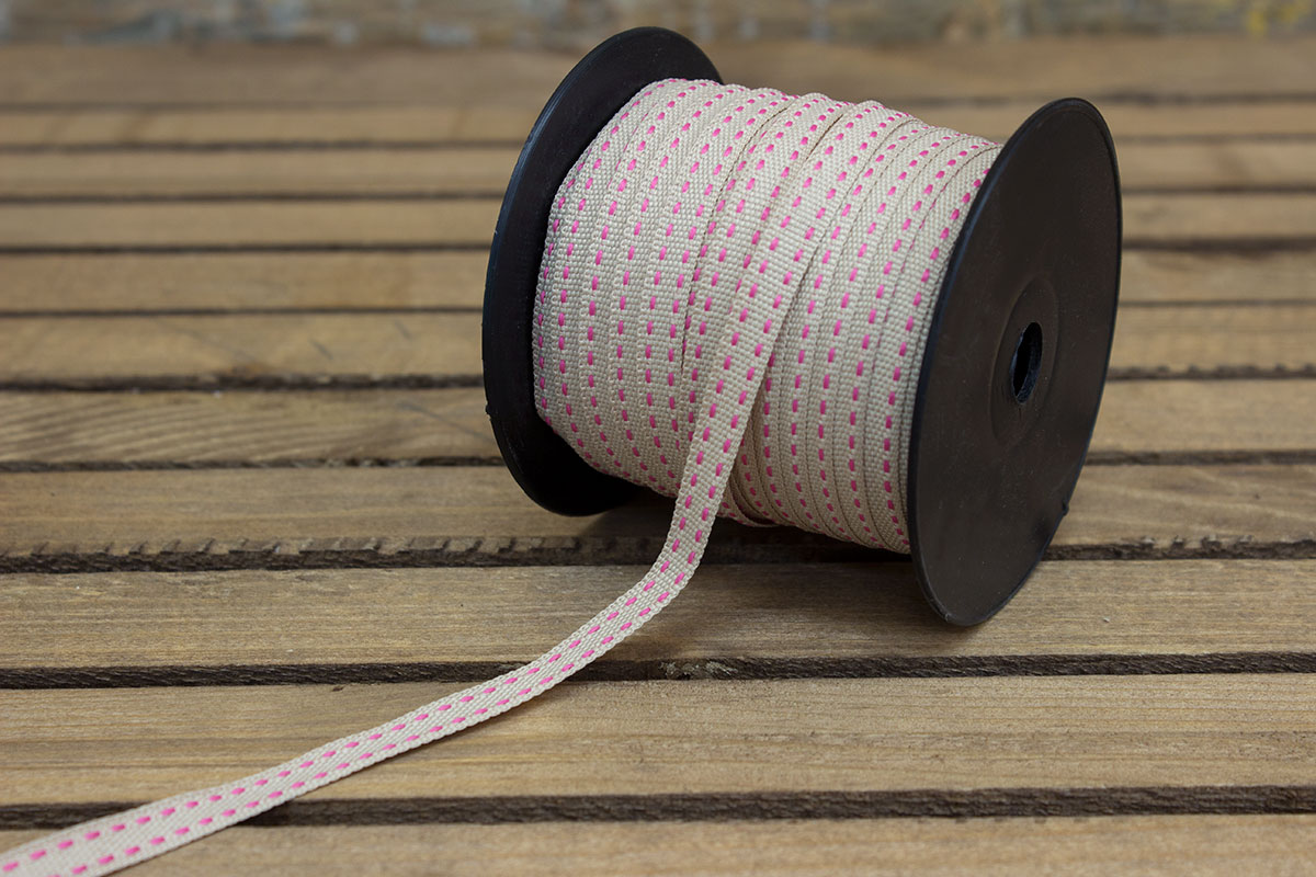Κορδέλα μπεζ με φούξια γαζί, πλάτους 0,6cm.