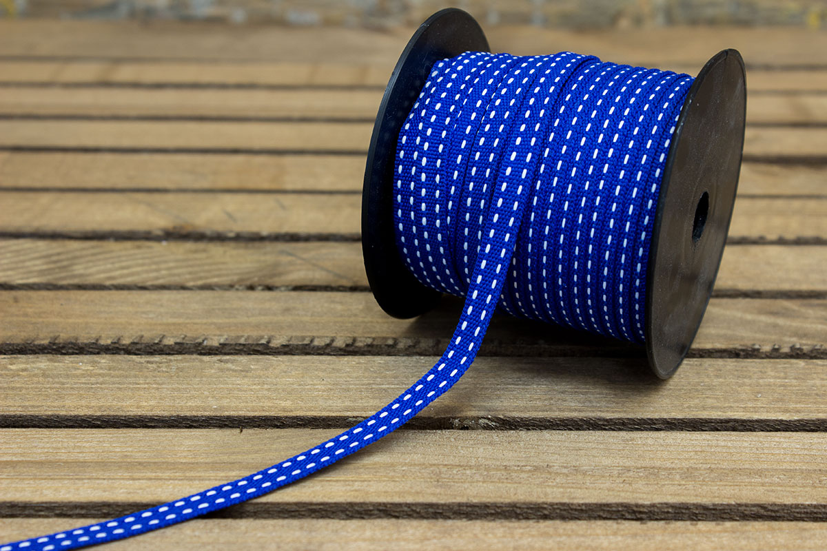 Κορδέλα μπλε ρουά με λευκό γαζί, πλάτους 0,6cm.