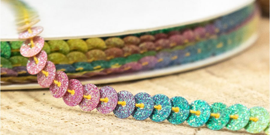 Κορδέλες και γιρλάντες με παγέτες και glitter.