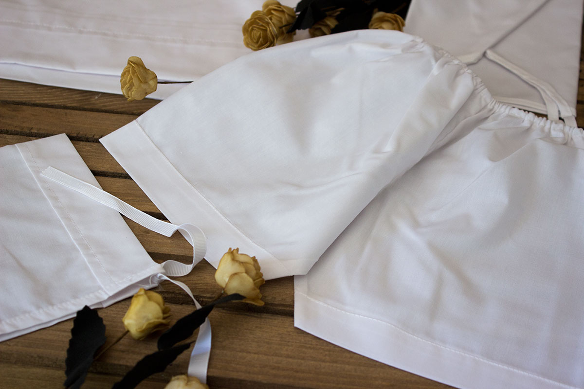 Σετ λαδόπανα για αγοράκι, σε υφασμάτινη θήκη και χρώμα λευκό.